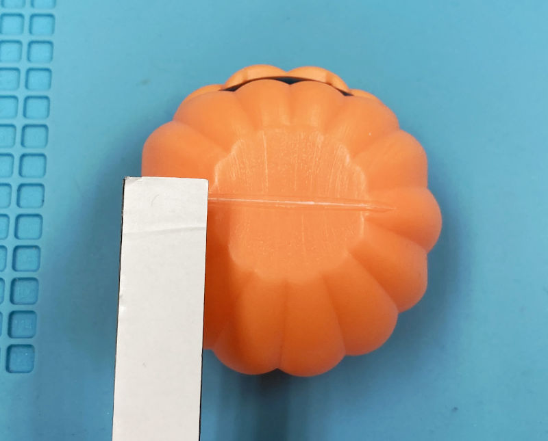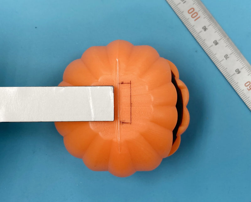 カボチャを4個つなげるとLEDスティックより長くなるので、一番上と一番下は半分くらいしかスティックが入っていません。
