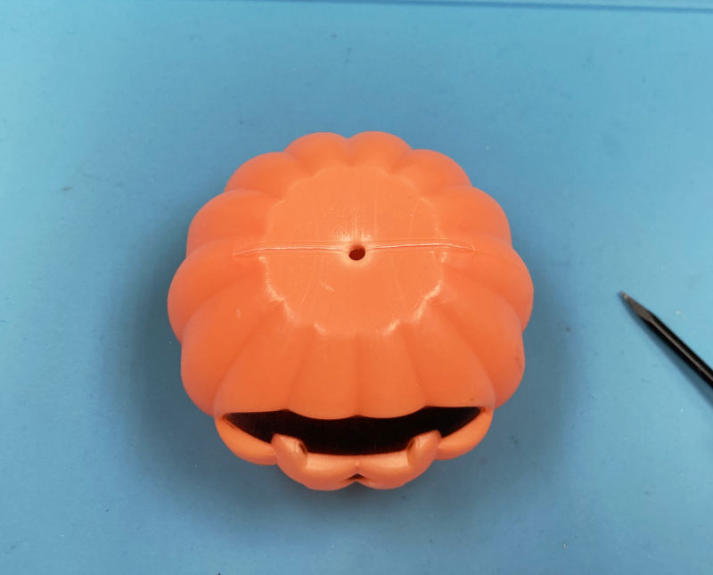 LEDが色を変えるとカボチャも微妙に色を変え、割といい感じで明滅しております。