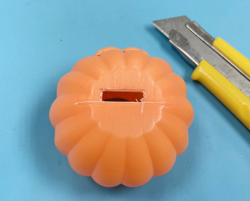 今回は光源が棒ですので、カボチャに挿して使用することにしました。
