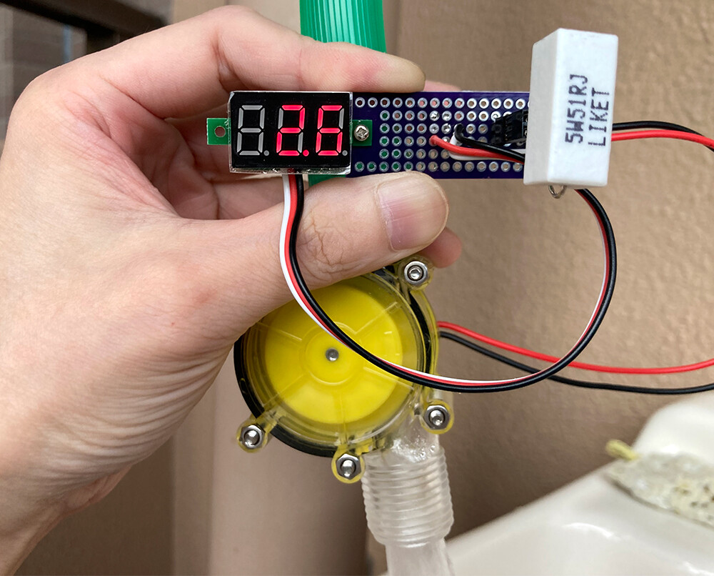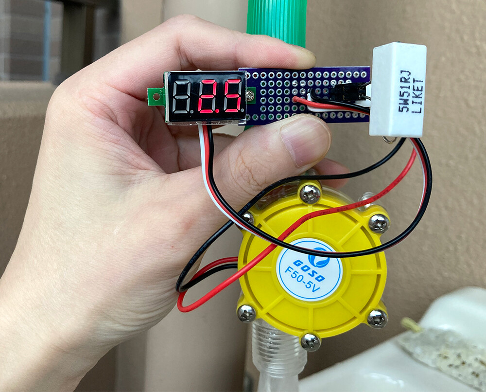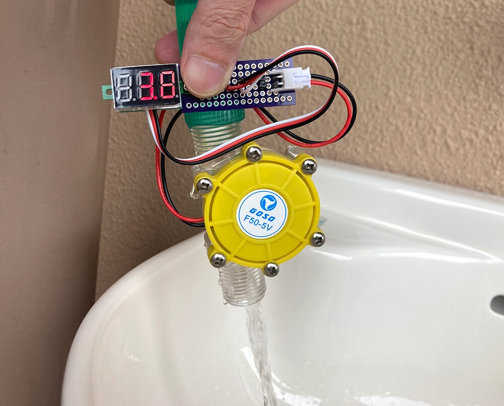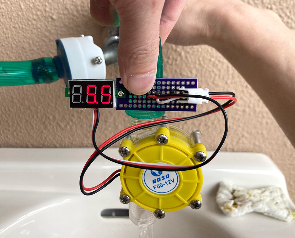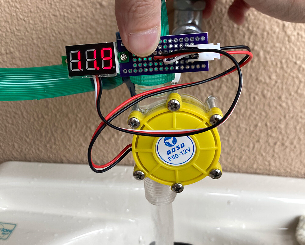 蛇口を回してだんだん水の流れを強くしていき、十分な流量までくると出力は最大5Vになり
